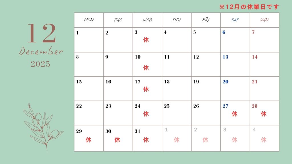 年末年始営業日のお知らせ 2025年12月27日(土)~2026年1月4日(日)